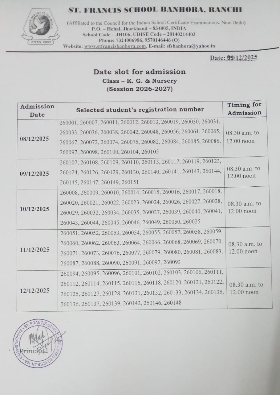 ST. FRANCIS SCHOOL, established in 2003, is an English Medium Co-Educational School, administered and conducted by the RANCHI FRANCISCAN SOCIETY, a registered Charitable Society having its headquarters at Harmu, Ranchi. The school has classes from Nursery to Std. X which is affiliated to the Council for the Indian School Certificate Examination, New Delhi. Staffed by dedicated and qualified Sisters, Fathers and Brothers the TOR Franciscan Society runs several Schools in India in which young people belonging to every creed, social class, community and linguistic group are educated through the medium of English and the regional languages. These institutions are part of the Catholic Church’s effort to share in the country’s educational undertaking. This effort, while particularly responsible for the Christian Community, has always been at the service of the whole nation.